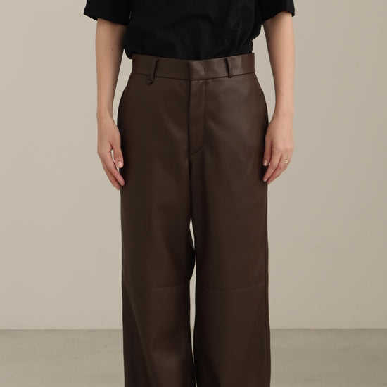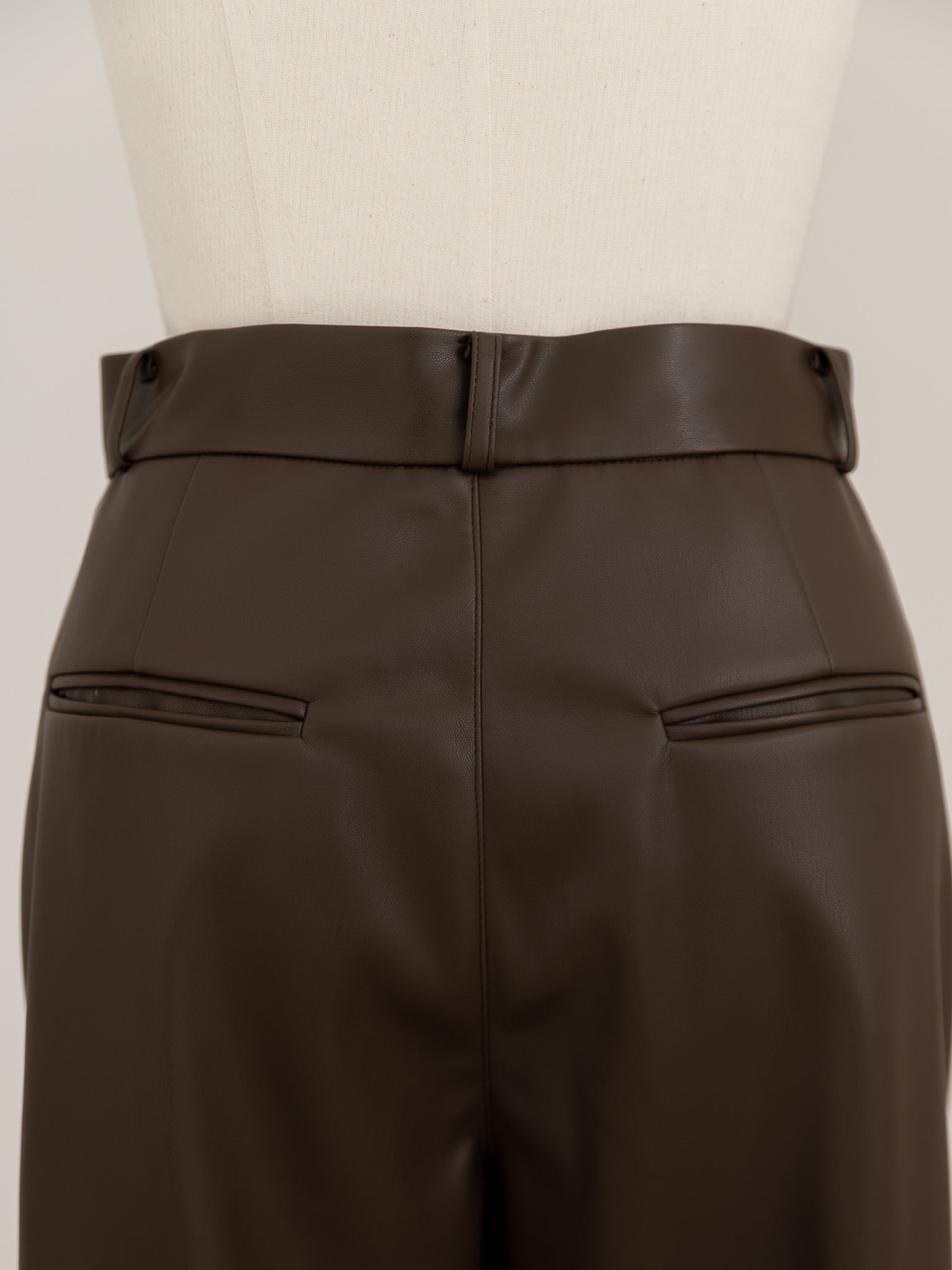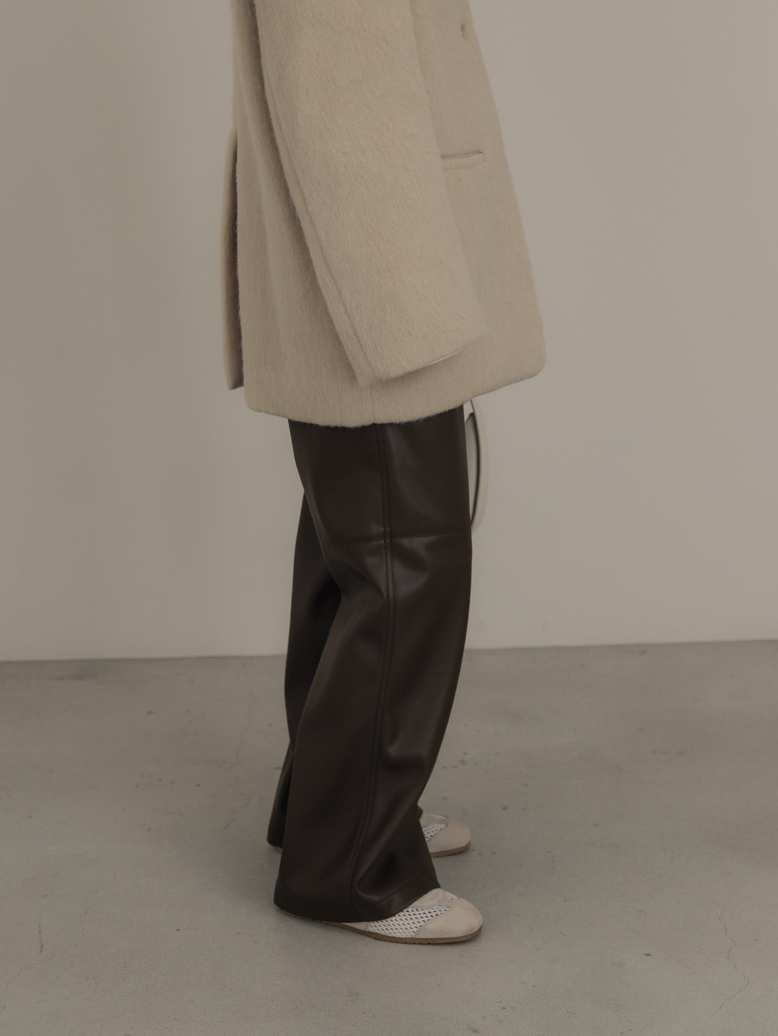 上品な艶とマットな質感のバランスが程よいので表面が美しく、ストレッチが効いており、柔らかさと膨らみのあるフェイクレザーを使用。