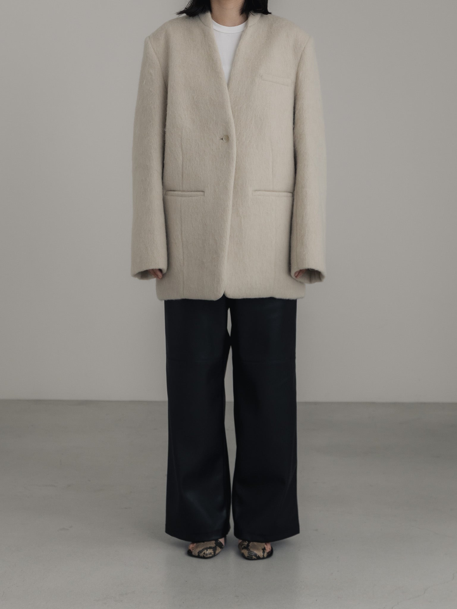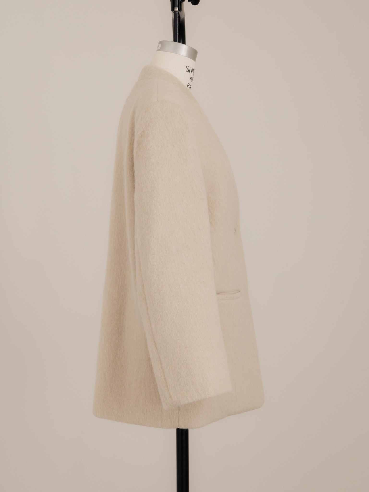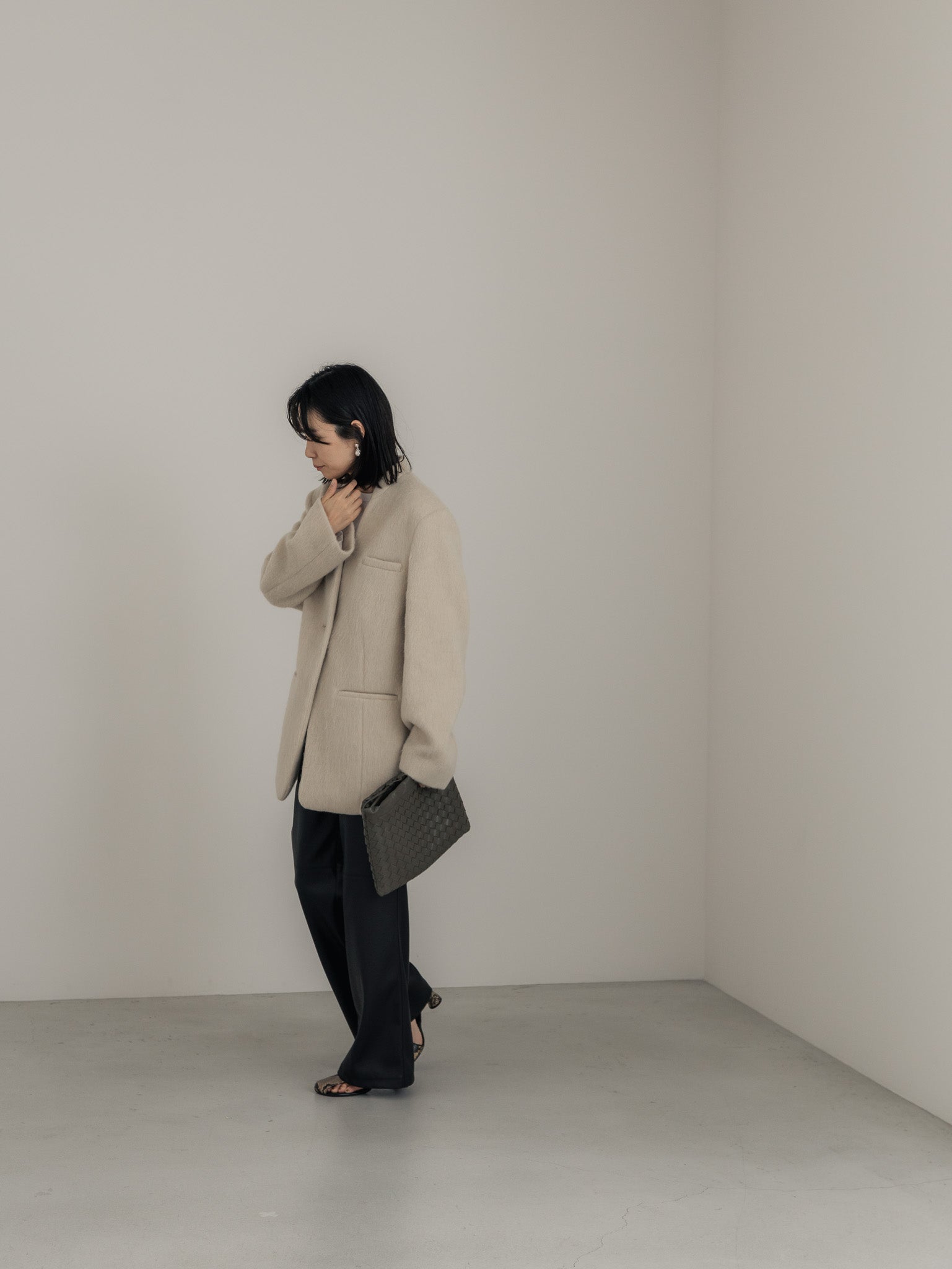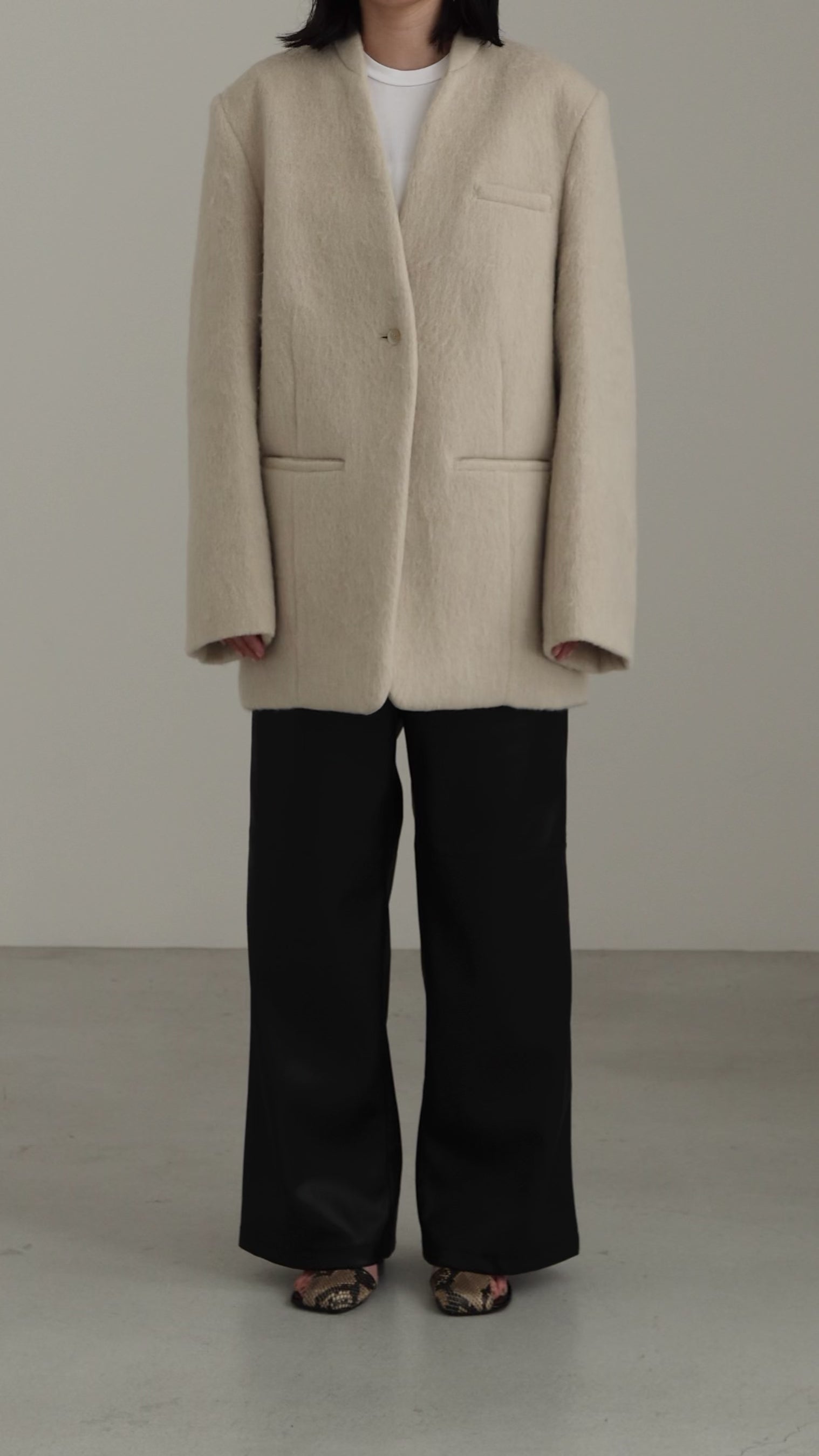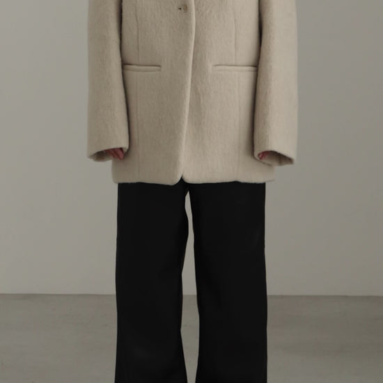 今回のcollarless jacketシリーズは、とことん冬らしい"シャギー素材"