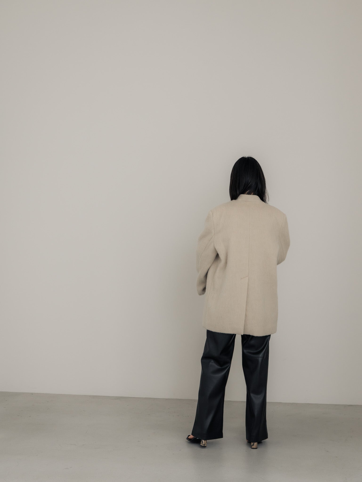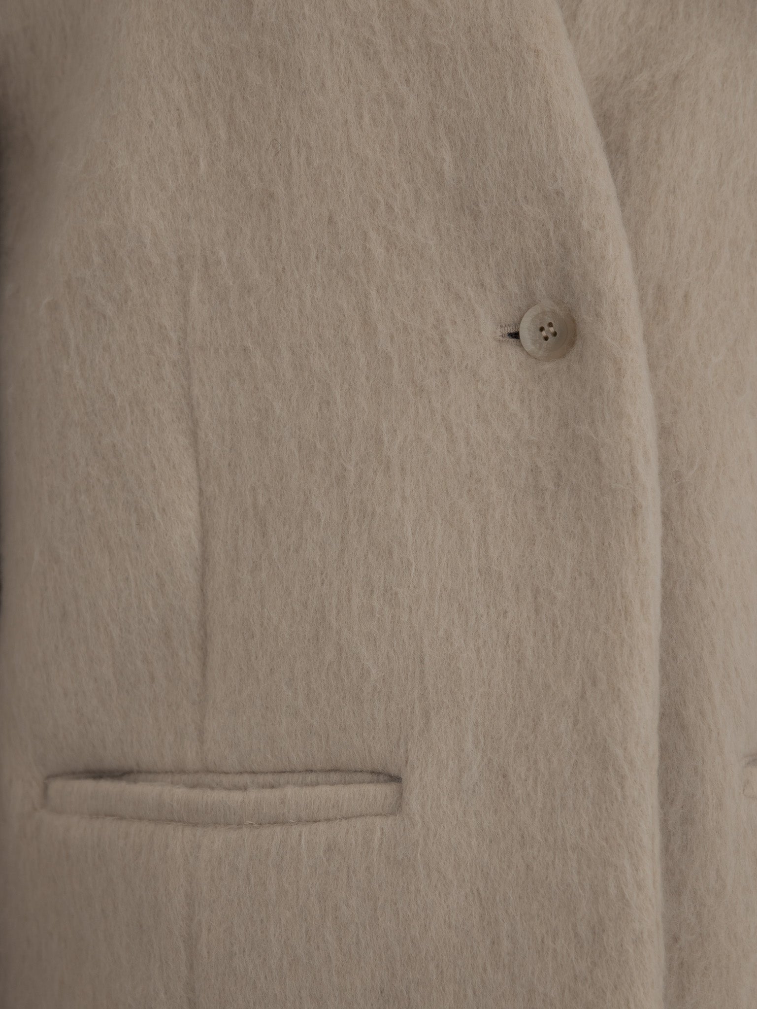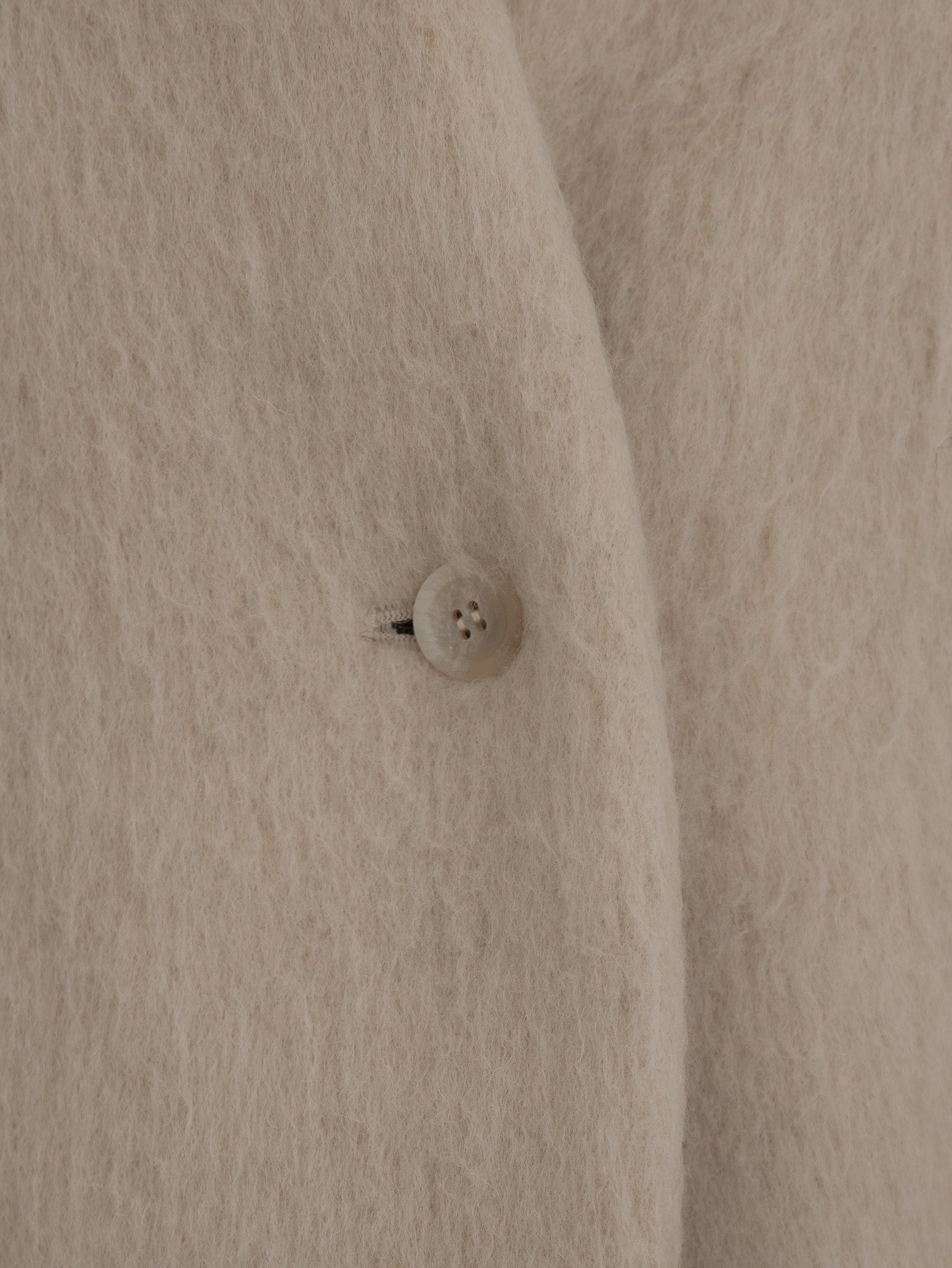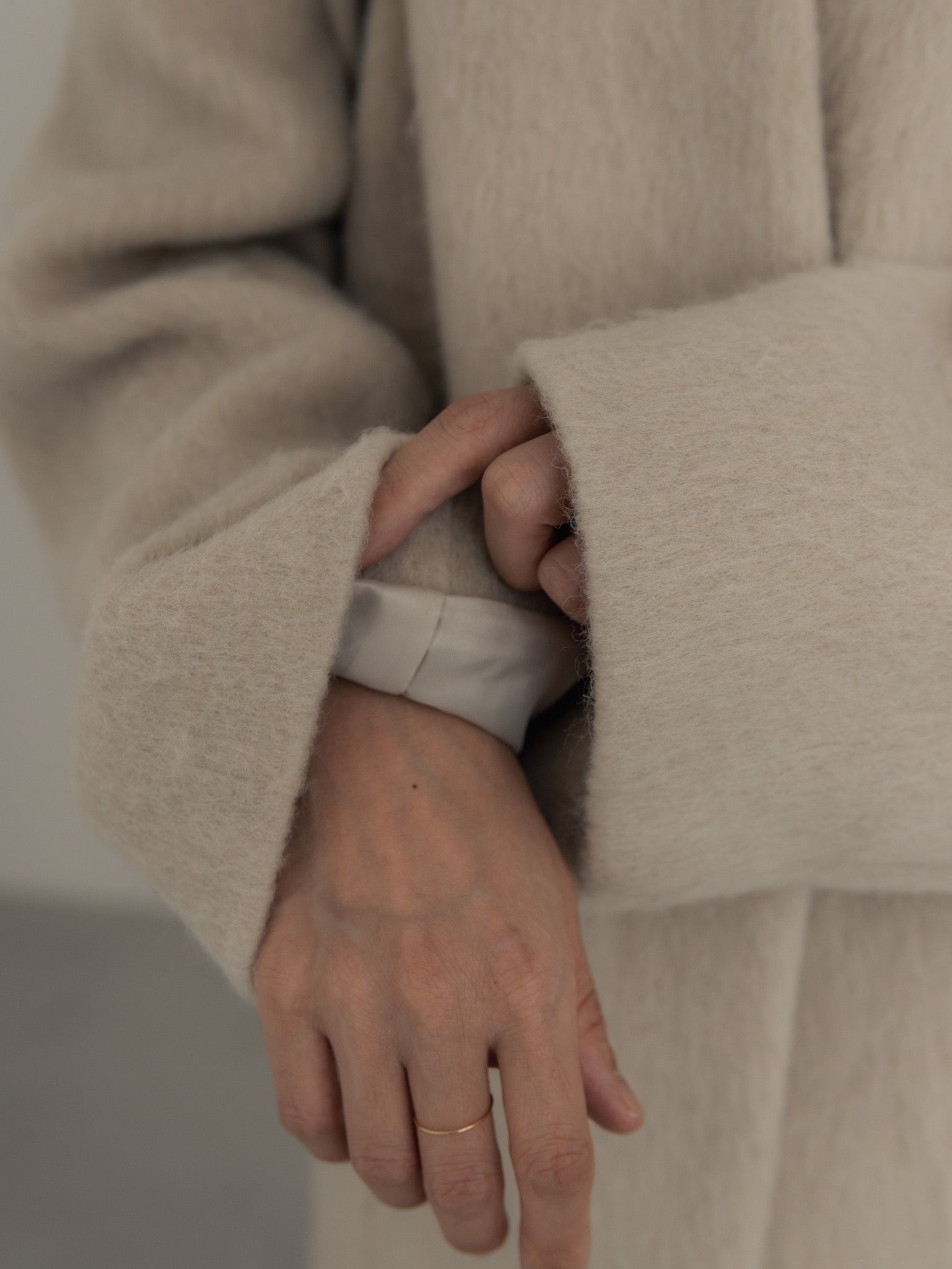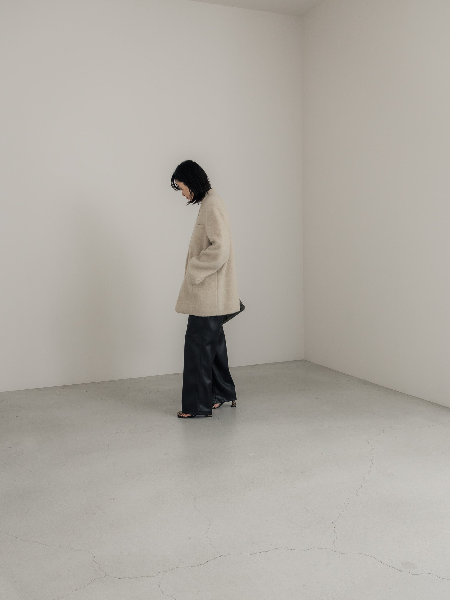 今回のcollarless jacketシリーズは、とことん冬らしい"シャギー素材"