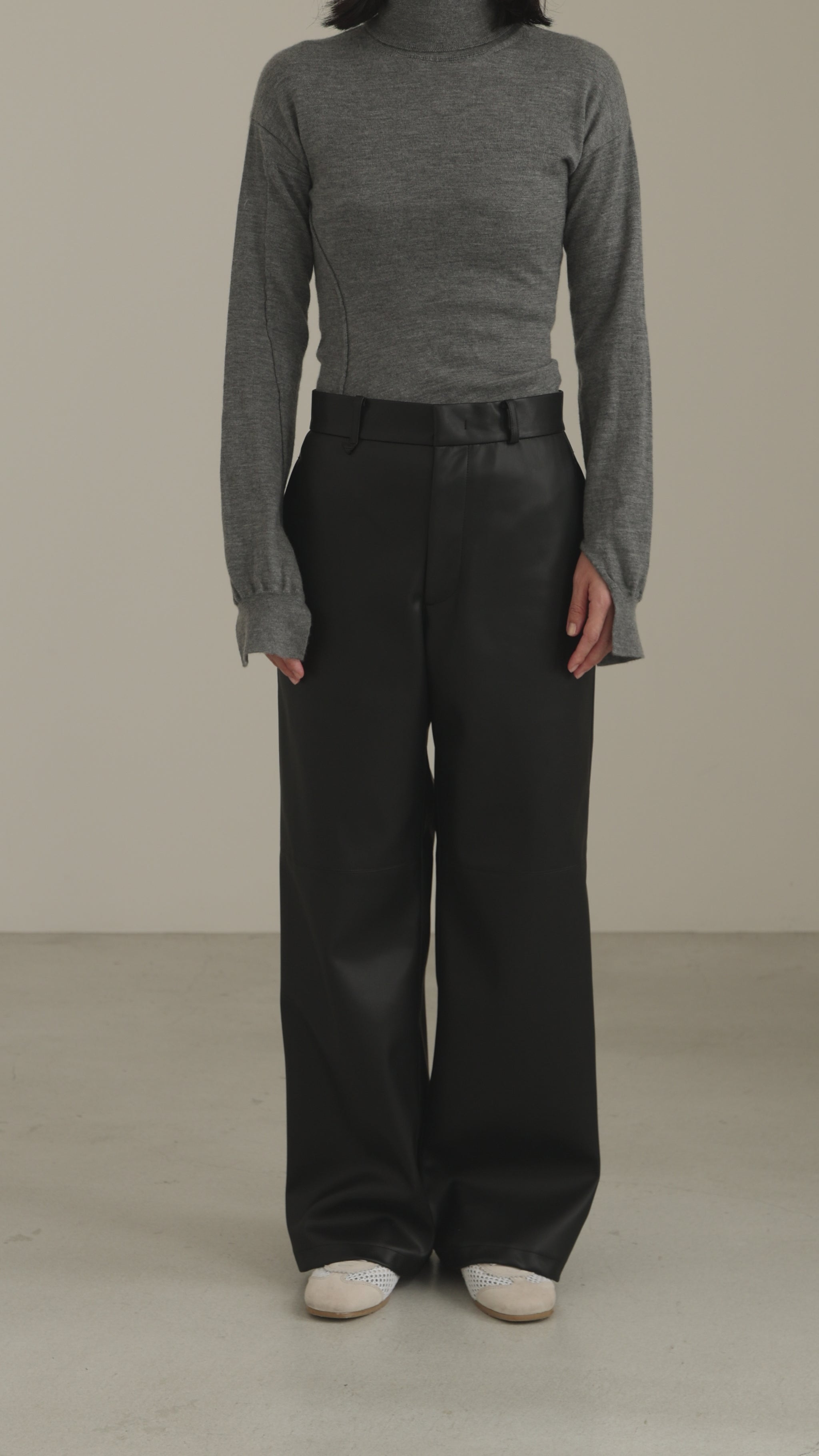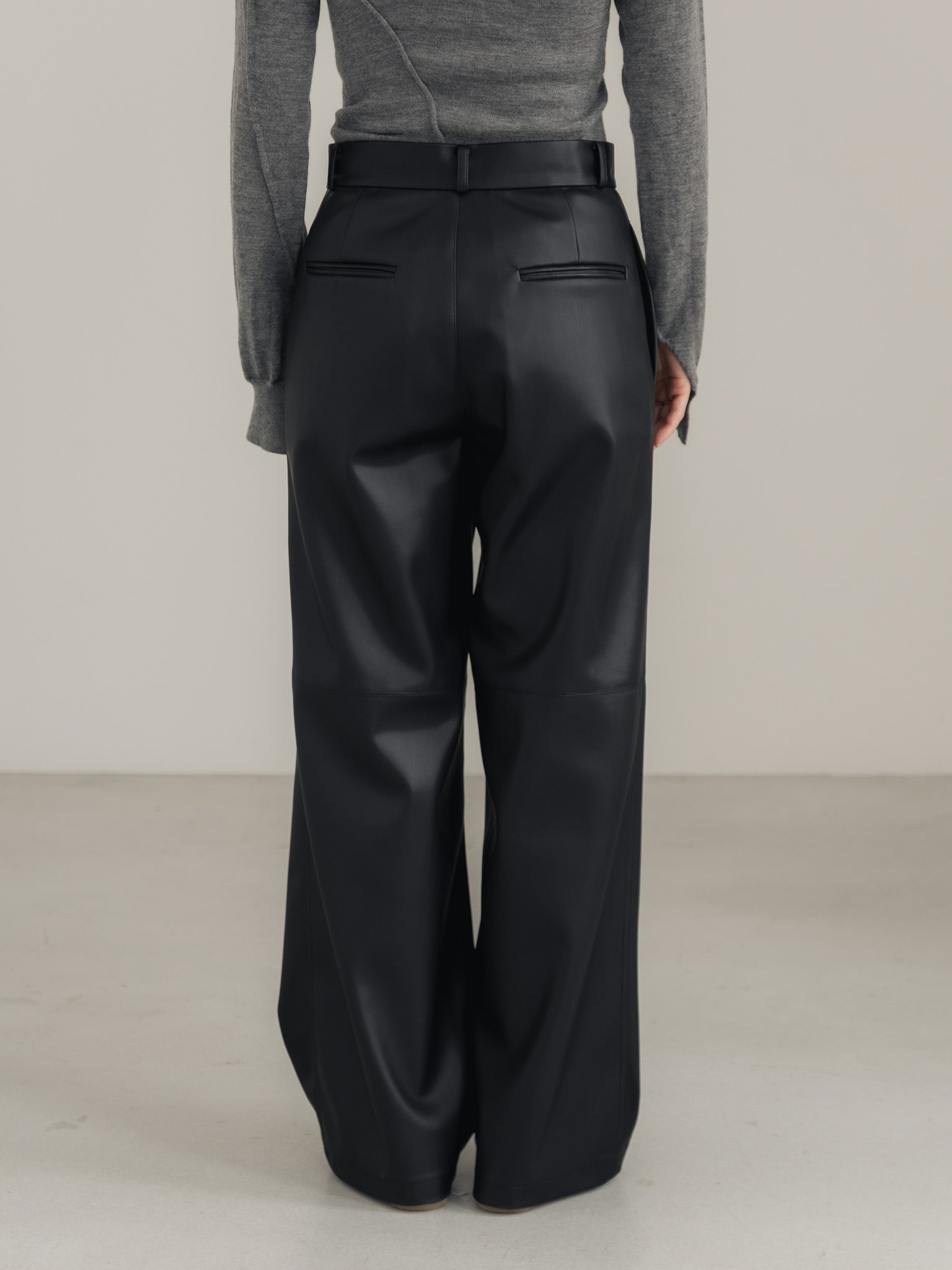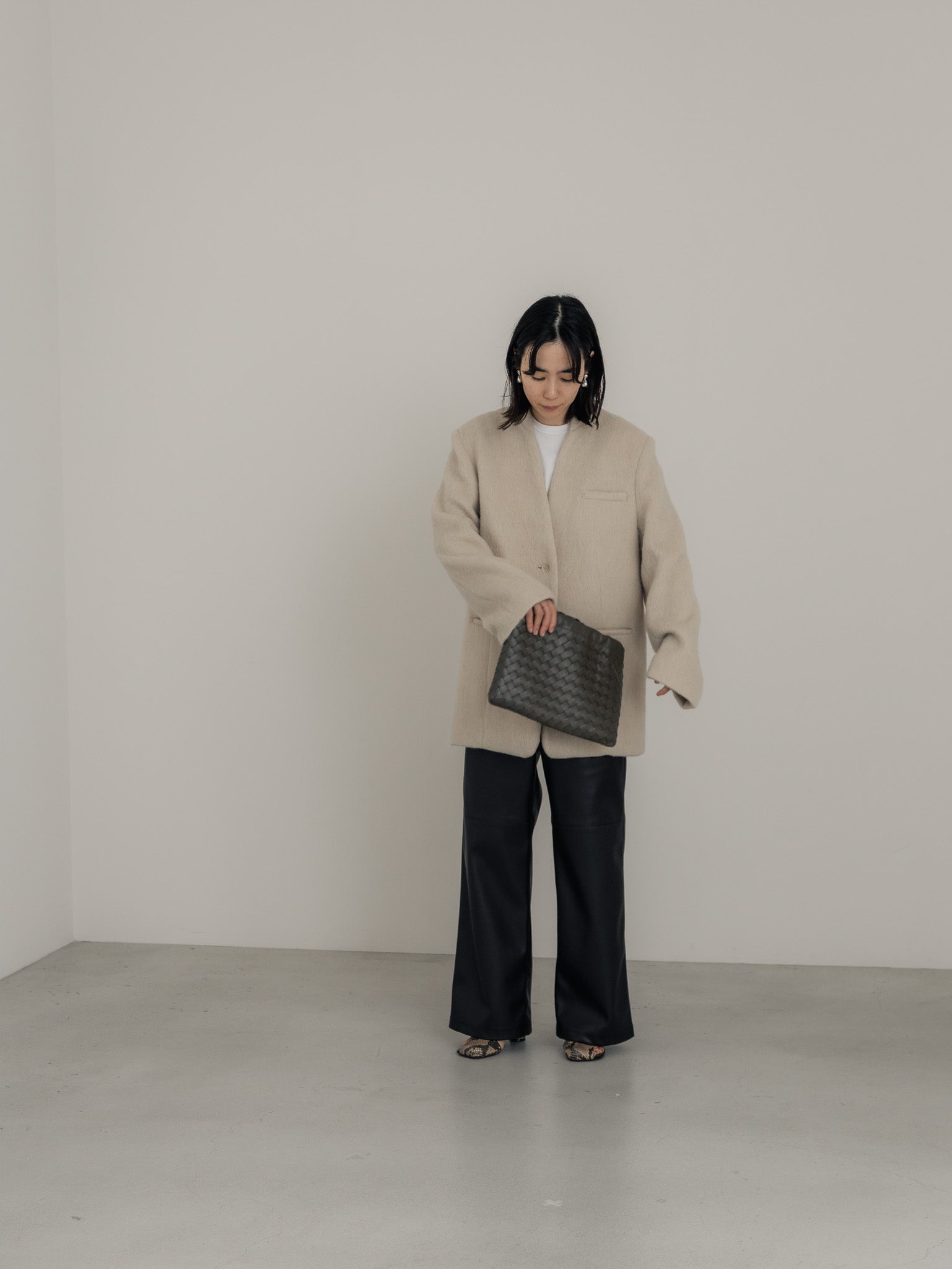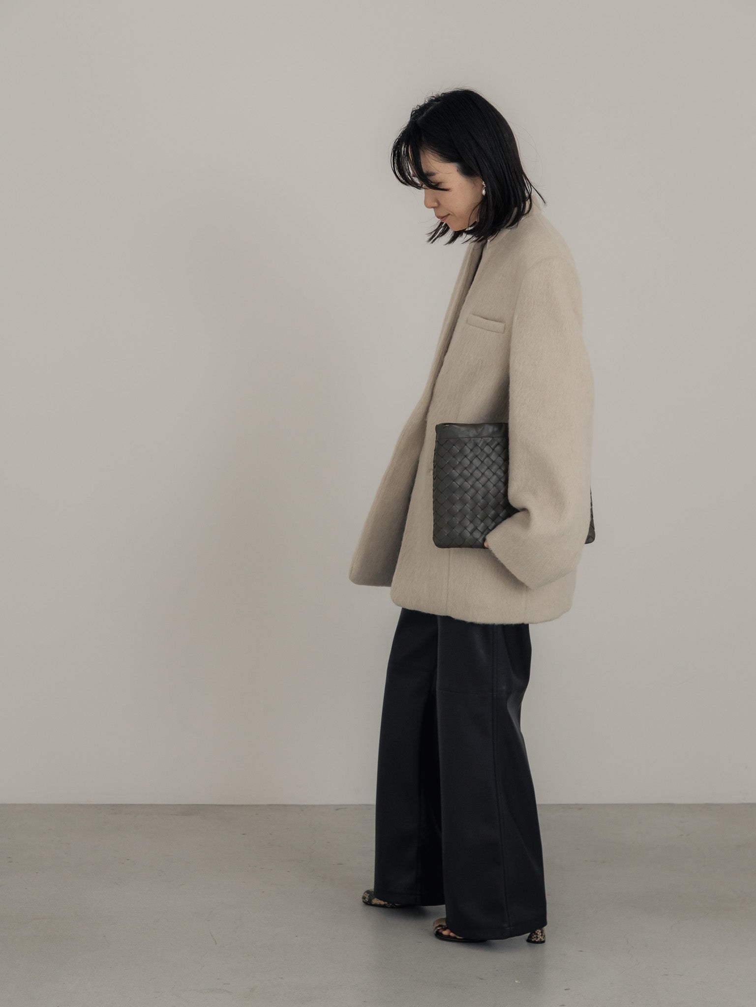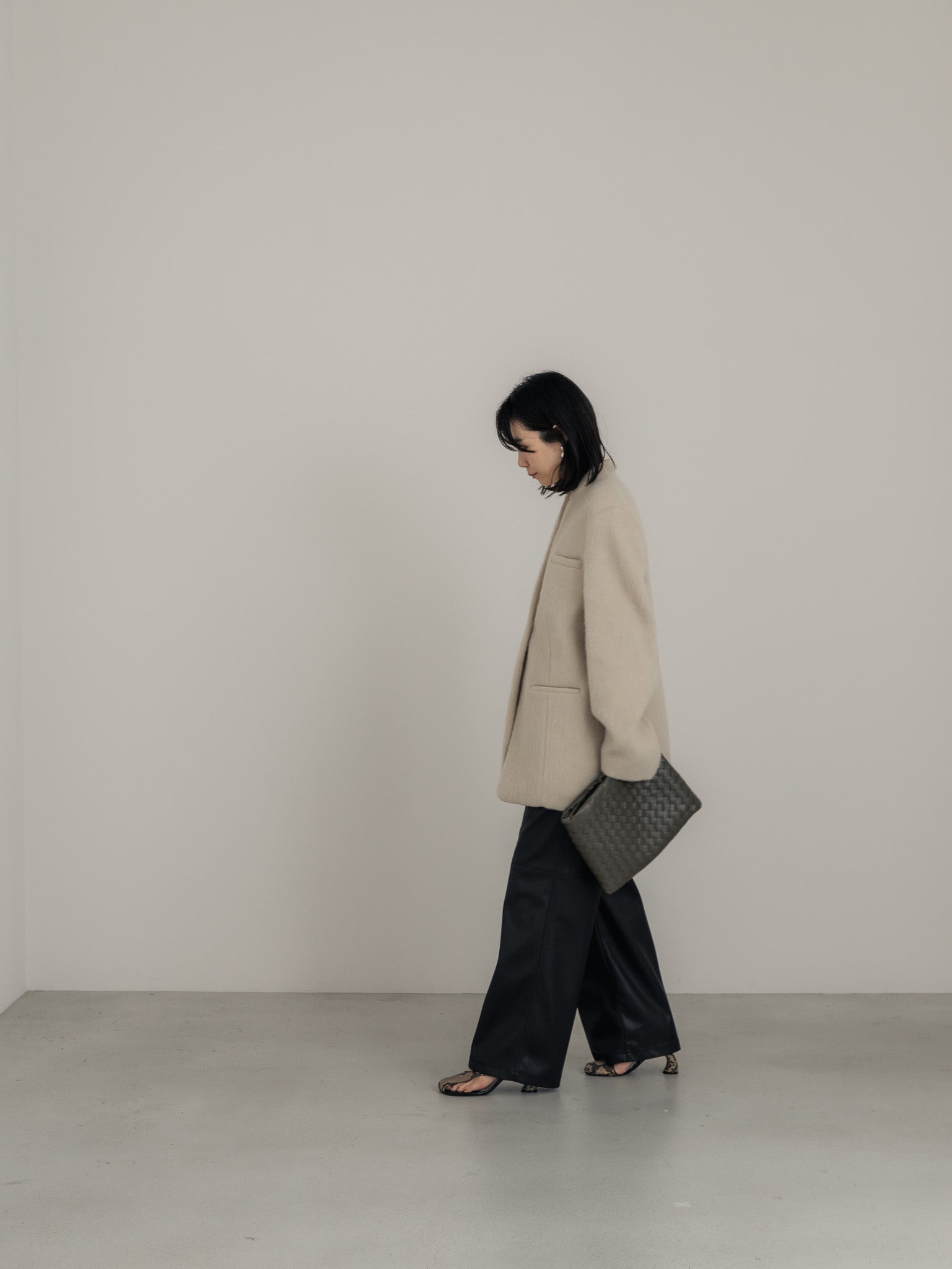 上品な艶とマットな質感のバランスが程よいので表面が美しく、ストレッチが効いており、柔らかさと膨らみのあるフェイクレザーを使用。